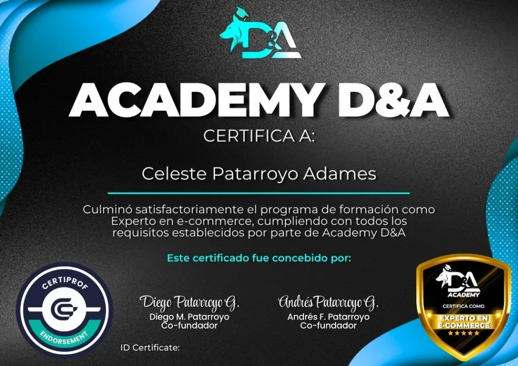 En Academy D&A no solo aprendes, te certificas internacionalmente. Gracias a nuestra alianza con CertiProf, tu certificación como Experto en E-commerce es reconocida por empresas a nivel mundial.